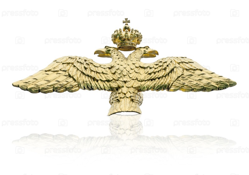 Золотой двуглавый коронованный орел изолирован на белом фоне. Элемент дизайна с обрезкой пути