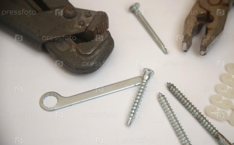 Тески, гвозди, плоскогубцы и другие инструменты для ремонта на столе