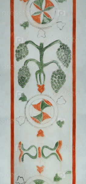 Средневековая раскрашенная декорация стены. Цветочные и геометрические украшения