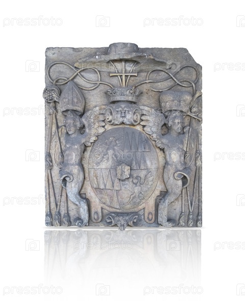 Исторический каменный герб во дворе архиепископа Кромериза. Элемент дизайна с обрезным путем, вырез готов