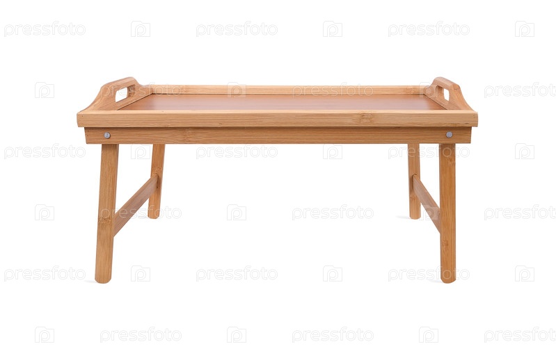Стол для завтрака из бамбука изолирован на белом фоне. Элемент дизайна с обрезкой пути