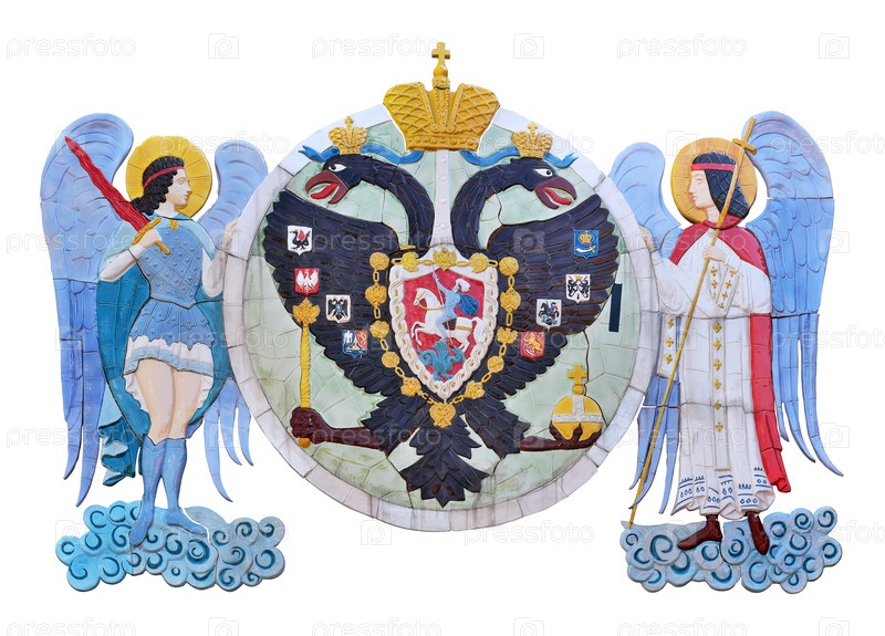 Большой государственный герб Российской империи изолирован на белом фоне. Элемент дизайна с обрезкой пути