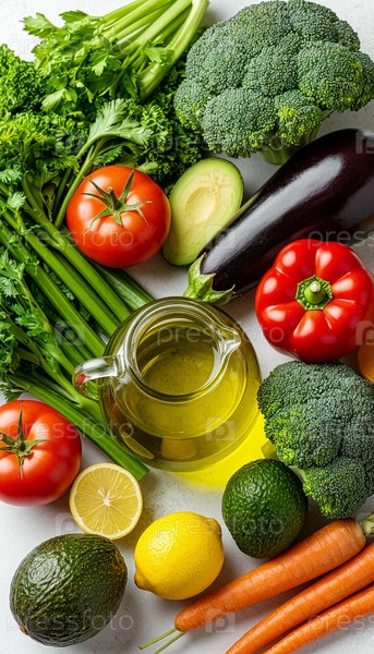 Свежие овощи, фрукты и зелень на светлом фоне