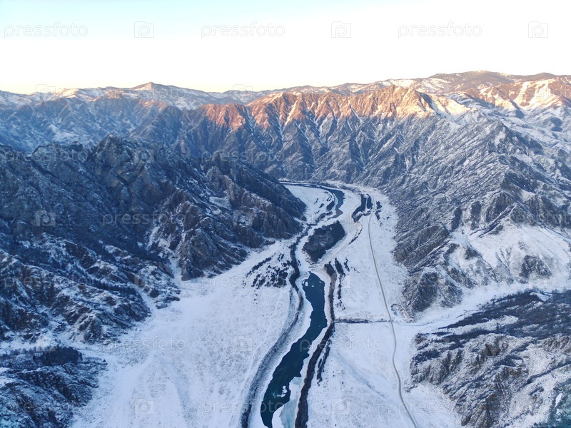 Горнай Алтай Зимой, река Катуни Закате. Алтайские горы зимой, река Катун на закате