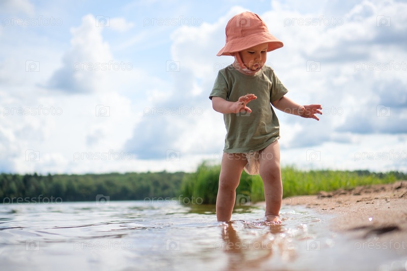 Малыш бежит по песчаному пляжу с оранжевой шляпой, чувствуя свободу и радость движения
