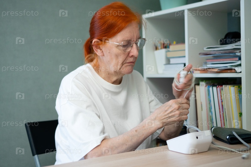 Зрелая женщина подключает пуповину монитора артериального давления
