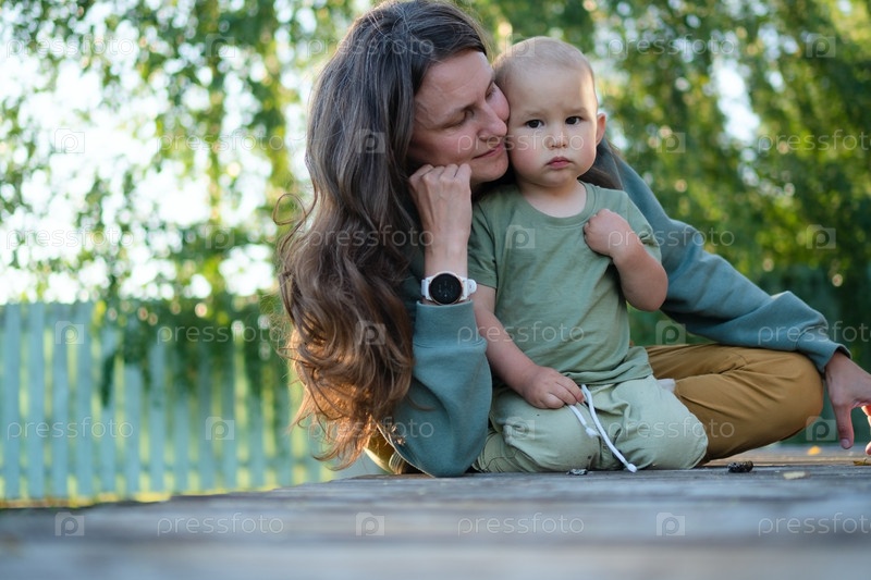 Счастливый дуэт матери и ребенка, наслаждающийся природой