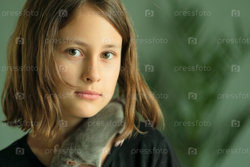 Близость девушки и ее серой крысы Дамбо