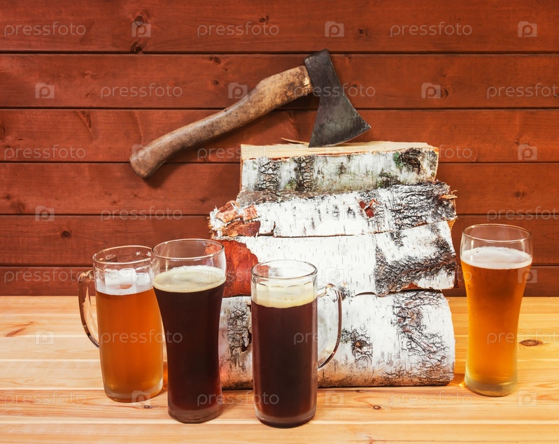 Пиво, куча рубленных дров и топор