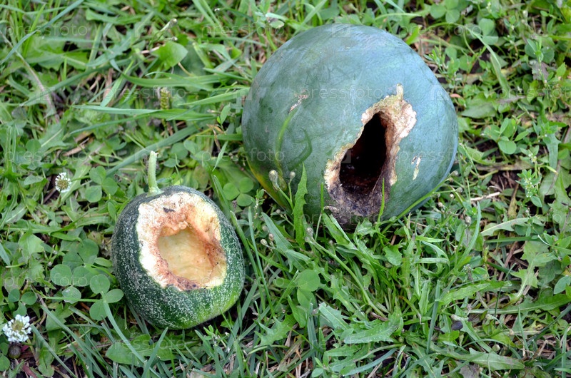 Вредители огорода. Грызуны. Завязи арбуза и дыни, поврежденные грызунами