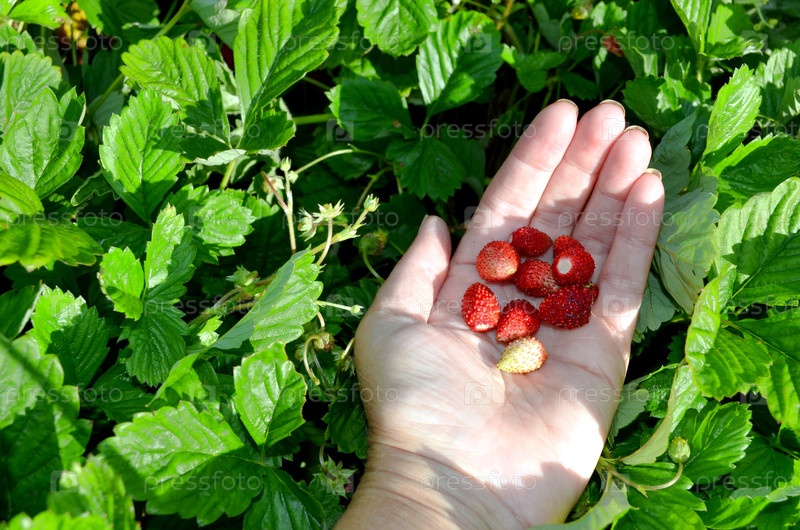 Созрели первые ягоды земляники ремонтантной. Ягоды в ладошке