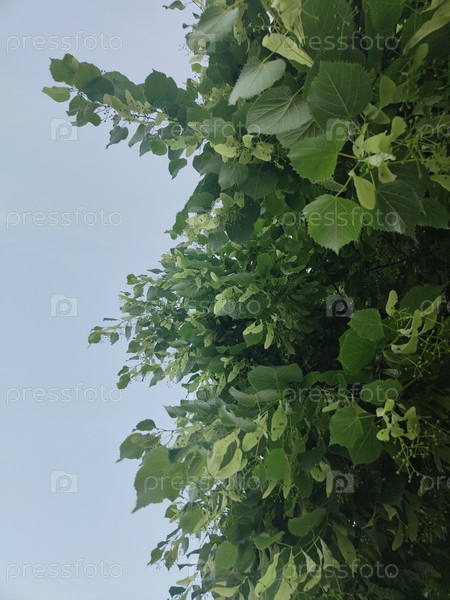 Зеленые листья на фоне неба, летняя листва, естественный фон, обои