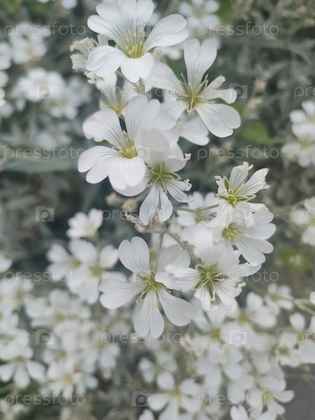 Белые полевые цветы закрываются, естественный цветочный фон, декоративные обои