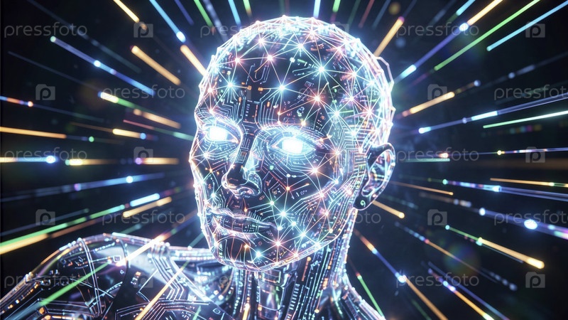 Футуристическая бионическая голова со светящейся схемой