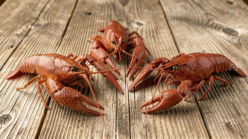 Три красных рыбки на деревенском столе