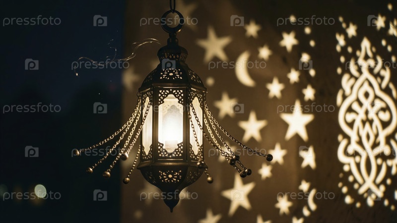 Освещенный фонарь со звездными тенями
