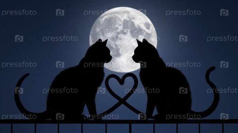 Кошки под лунным светом с сердечной связью