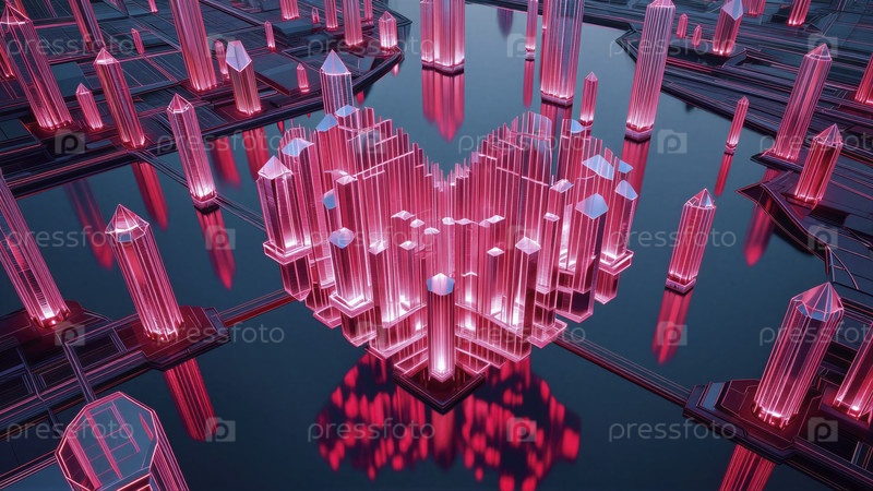 Футуристическое кристаллическое сердце в розовых неоновых огнях