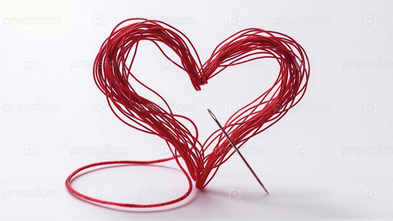 Сердце, сотканное красной нитью и иглой