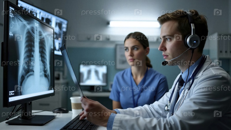 Медицинские специалисты, анализирующие рентгеновские лучи в клинике