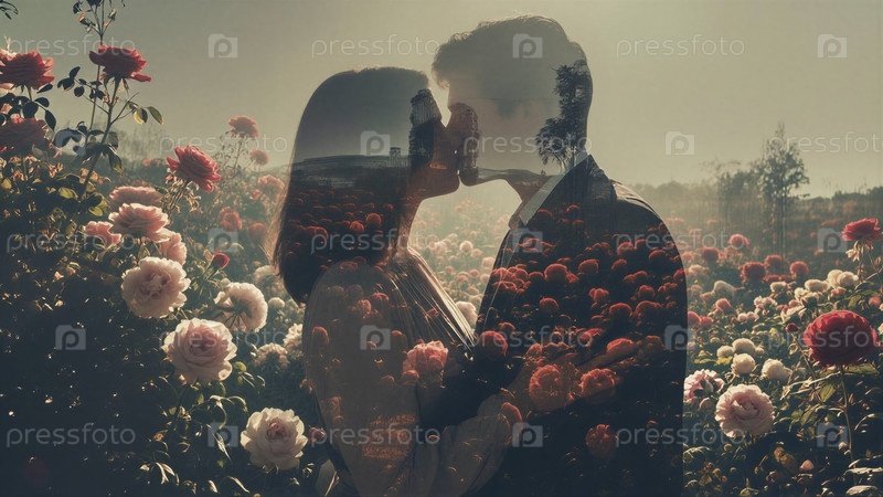 Романтическая пара в розовом поле