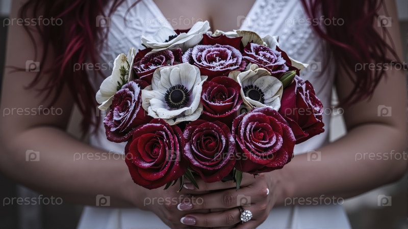 Невеста с готическим свадебным букетом