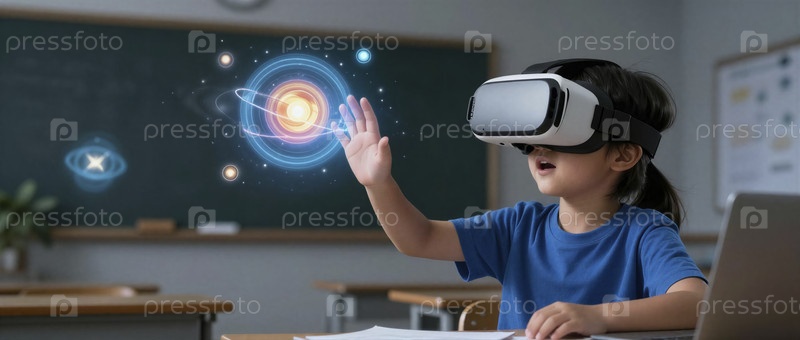 Ребенок исследует Солнечную систему с помощью VR-очков