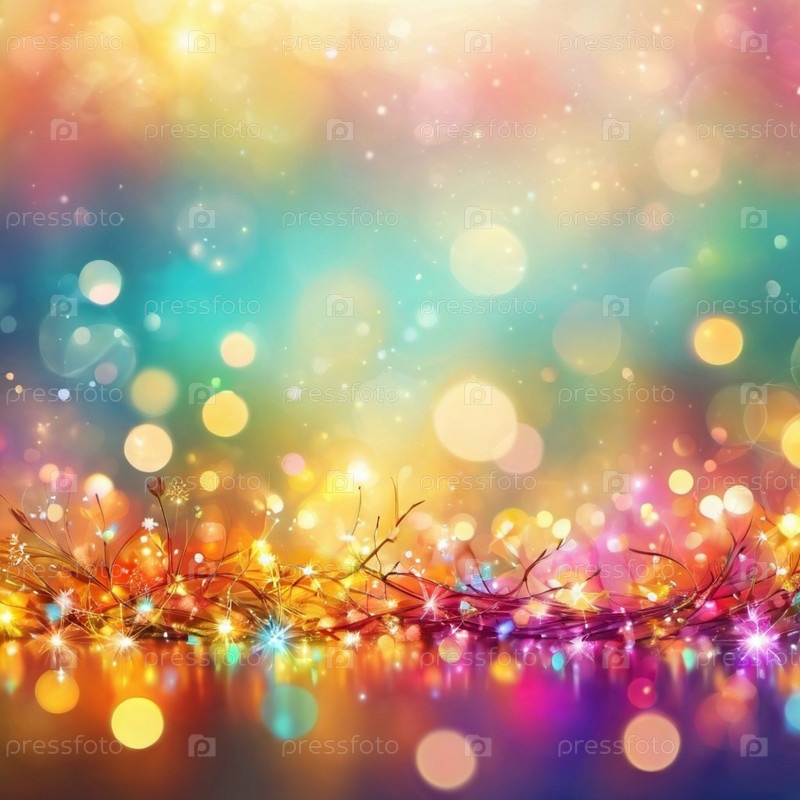 Красочный фон боке с мягким, размытым фокусом. Яркие цвета синего, розового, желтого, зеленого и оранжевого. Эффект боке создает мечтательную, праздничную, фантастическую атмосферу. Генерированный ИИ