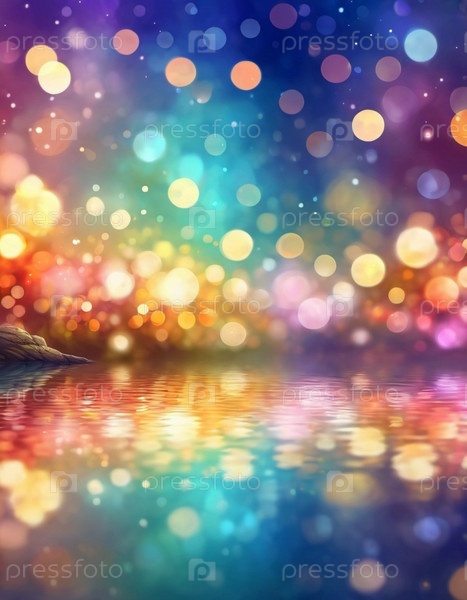 Красочный фон боке с мягким, размытым фокусом. Яркие цвета синего, розового, желтого, зеленого и оранжевого. Эффект боке создает мечтательную, праздничную, фантастическую атмосферу. Генерированный ИИ