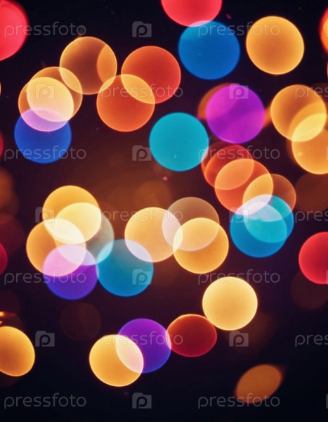 Красочный фон боке с мягким, размытым фокусом. Черный передний план. Яркие цвета синего, розового, желтого, зеленого и оранжевого. Эффект боке создает мечтательную, праздничную ночную атмосферу. Генерированный ИИ