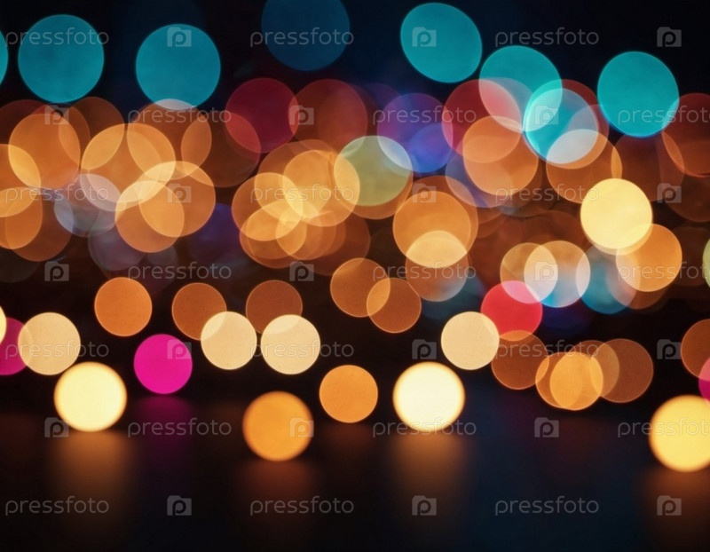 Красочный фон боке с мягким, размытым фокусом. Черный передний план. Яркие цвета синего, розового, желтого, зеленого и оранжевого. Эффект боке создает мечтательную, праздничную ночную атмосферу. Генерированный ИИ