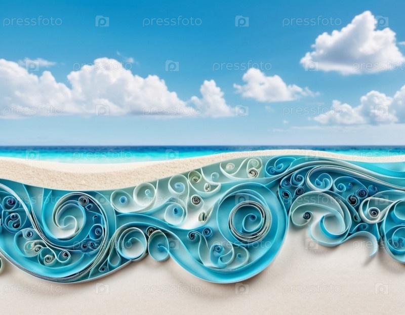 Захватывающий вид на нетронутый пляж с белым песком на Мальдивах. Бирюзовые воды Индийского океана плавно прилегают к берегу, создавая безмятежную идиллическую сцену. Небо ярко-голубое, усеянное пушистыми белыми облаками
