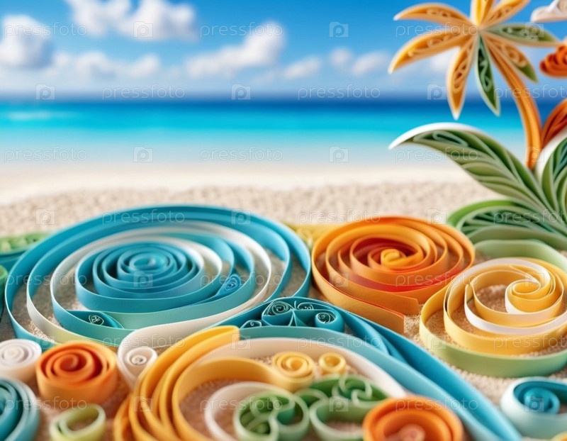 Художественная пляжная сцена с нежными волнами, песчаная береговая линия. Яркие цвета создают мирную атмосферу. Генерированный ИИ. Концепция путешествий на солнечный пляж. Копируйте пространство. Солнечный тропический рай. Взрывной фон