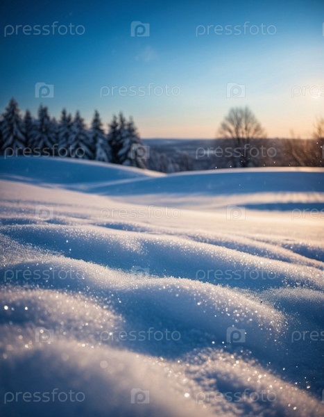 Милый рождественский пейзаж, покрытый свежим белым снегом. Прекрасный зимний лес. Новогодняя рождественская атмосфера. Праздничная и очаровательная зимняя страна чудес. Снежинки, сугробы и холмы. генерируемый