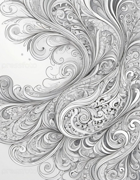 Узор с закрученными, цветочными формами. Дизайн оттенков серого, создавая визуально привлекательный и текстурированный фон. Сложные детали и органические кривые добавляют ощущение движения и текучести. ИИ