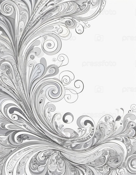 Узор с закрученными, цветочными формами. Дизайн оттенков серого, создавая визуально привлекательный и текстурированный фон. Сложные детали и органические кривые добавляют ощущение движения и текучести. ИИ