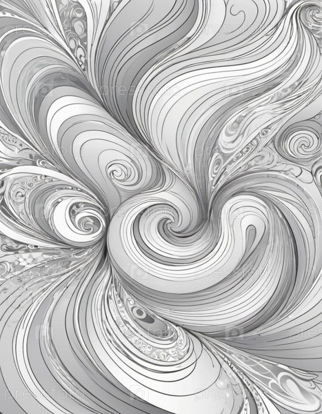 Узор с закрученными, цветочными формами. Дизайн оттенков серого, создавая визуально привлекательный и текстурированный фон. Сложные детали и органические кривые добавляют ощущение движения и текучести. ИИ