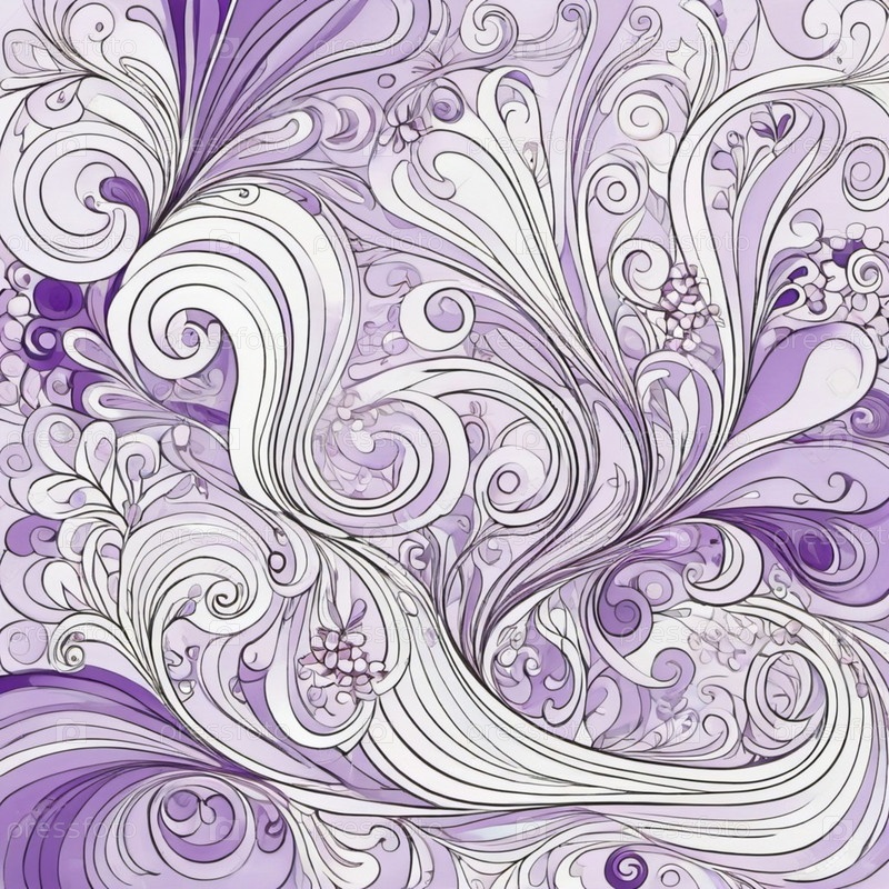 Узор с закрученными, цветочными формами. Дизайн оттенков фиолетового, создавая визуально привлекательный и текстурированный фон. Сложные детали и органические кривые добавляют ощущение движения и текучести. ИИ