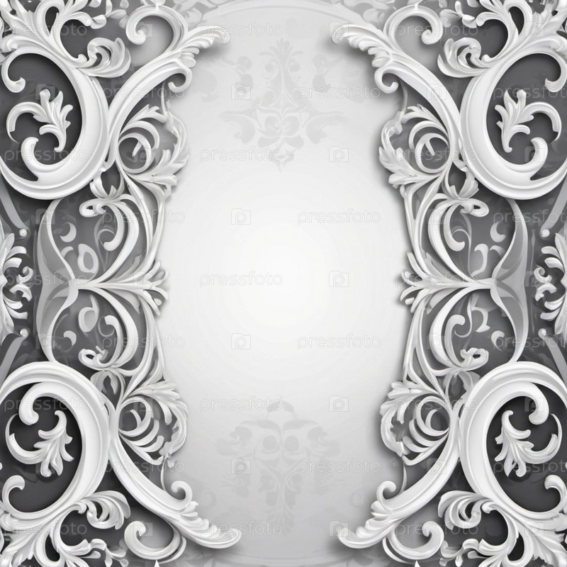 Каркас в стиле рококо-барокко. Нежные серо-серо-белые монохромные цветы, мягкие лепестки. Изображение фиксирует сложные детали цветения, демонстрируя нежную красоту. Справочная информация с копированием пространства. ИИ