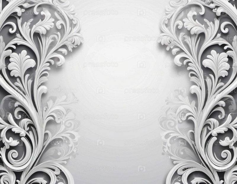 Каркас в стиле рококо-барокко. Нежные серо-серо-белые монохромные цветы, мягкие лепестки. Изображение фиксирует сложные детали цветения, демонстрируя нежную красоту. Справочная информация с копированием пространства. ИИ