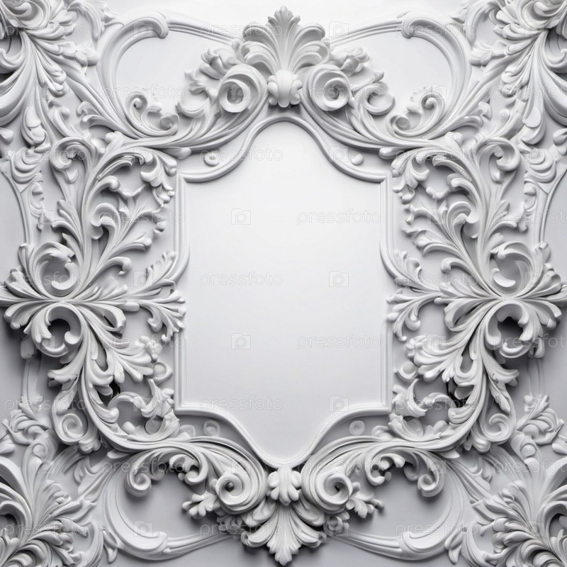 Каркас в стиле рококо-барокко. Нежные серо-серо-белые монохромные цветы, мягкие лепестки. Изображение фиксирует сложные детали цветения, демонстрируя нежную красоту. Справочная информация с копированием пространства. ИИ