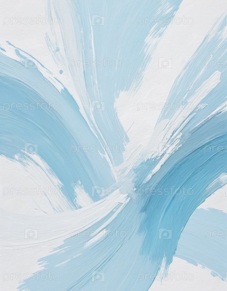 Абстрактная картина крупным планом с белыми и синими мазками. Текстура толстая и видимая, создавая динамичную и современную эстетику. Сгенерированный ИИ. Светло-голубой фон