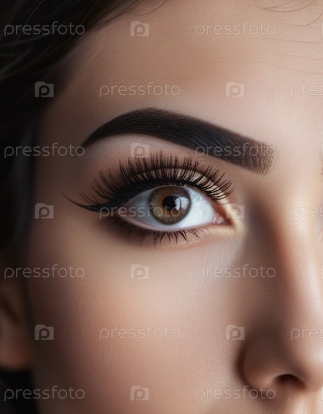 Крупный план женского глаза, с толстой, темной подводкой для глаз и длинными темными ресницами. Захватывающий и загадочный эффект. Изображение подчеркивает красоту глаза, с его ярким цветом и сложными деталями