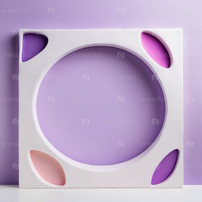 Вихрь фиолетового и белого крема на лавандовом фоне. Крем имеет круглую форму. Крем гладкий и глянцевый, а фон солидный и ровный. Копируйте пространство. Круговая рамка для текста. ИИ