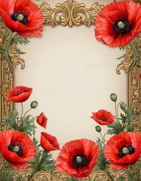 Красные маки, зеленые листья, стебли. Щенки изображены на различных стадиях цветения, причем некоторые полностью открыты, а другие в зародыше. Мягкая спина, создающая нежные романтические ощущения. Копируйте пространство. Открытка или макет