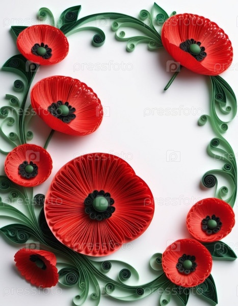 Красные маки, зеленые листья, стебли. Щенки изображены на различных стадиях цветения, причем некоторые полностью открыты, а другие в зародыше. Мягкая спина, создающая нежные романтические ощущения. Копируйте пространство. Открытка или макет
