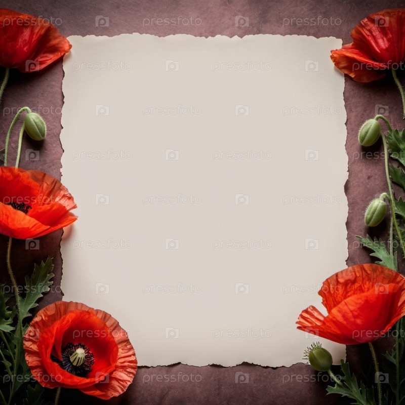 Красные маки, зеленые листья, стебли. Щенки изображены на различных стадиях цветения, причем некоторые полностью открыты, а другие в зародыше. Мягкая спина, создающая нежные романтические ощущения. Копируйте пространство. Открытка или макет