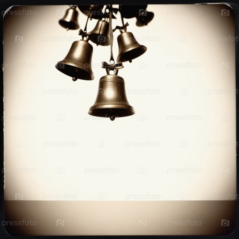 Золотые колокола висят на фоне копирования пространства. Колокола находятся в фокусе, с их сложными деталями. Изображение вызывает чувство праздника и праздника, что делает его идеальным для праздничных проектов