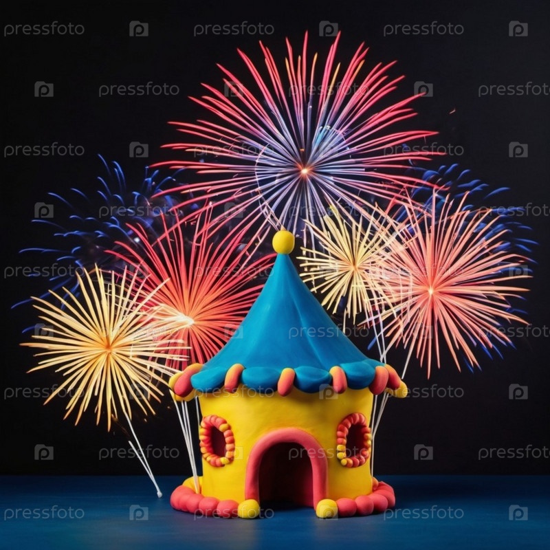 Причудливая ночная сцена с участием замка плейдоу, освещенного теплым светом, с красочными фейерверками, взрывающимися над ним. Праздничная и волшебная атмосфера. Сгенерированный ИИ. Фейерверк в отпуске