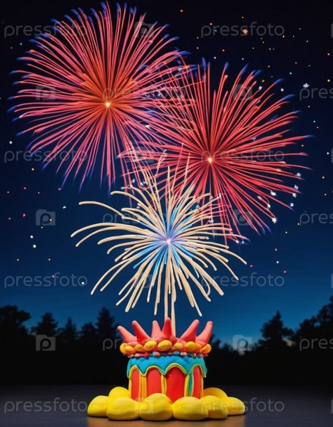 Причудливая ночная сцена с участием замка плейдоу, освещенного теплым светом, с красочными фейерверками, взрывающимися над ним. Праздничная и волшебная атмосфера. Сгенерированный ИИ. Фейерверк в отпуске